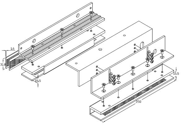 EBELCO consists of a magnet mounted onto door jamb and a steel plate attached to the top of the
